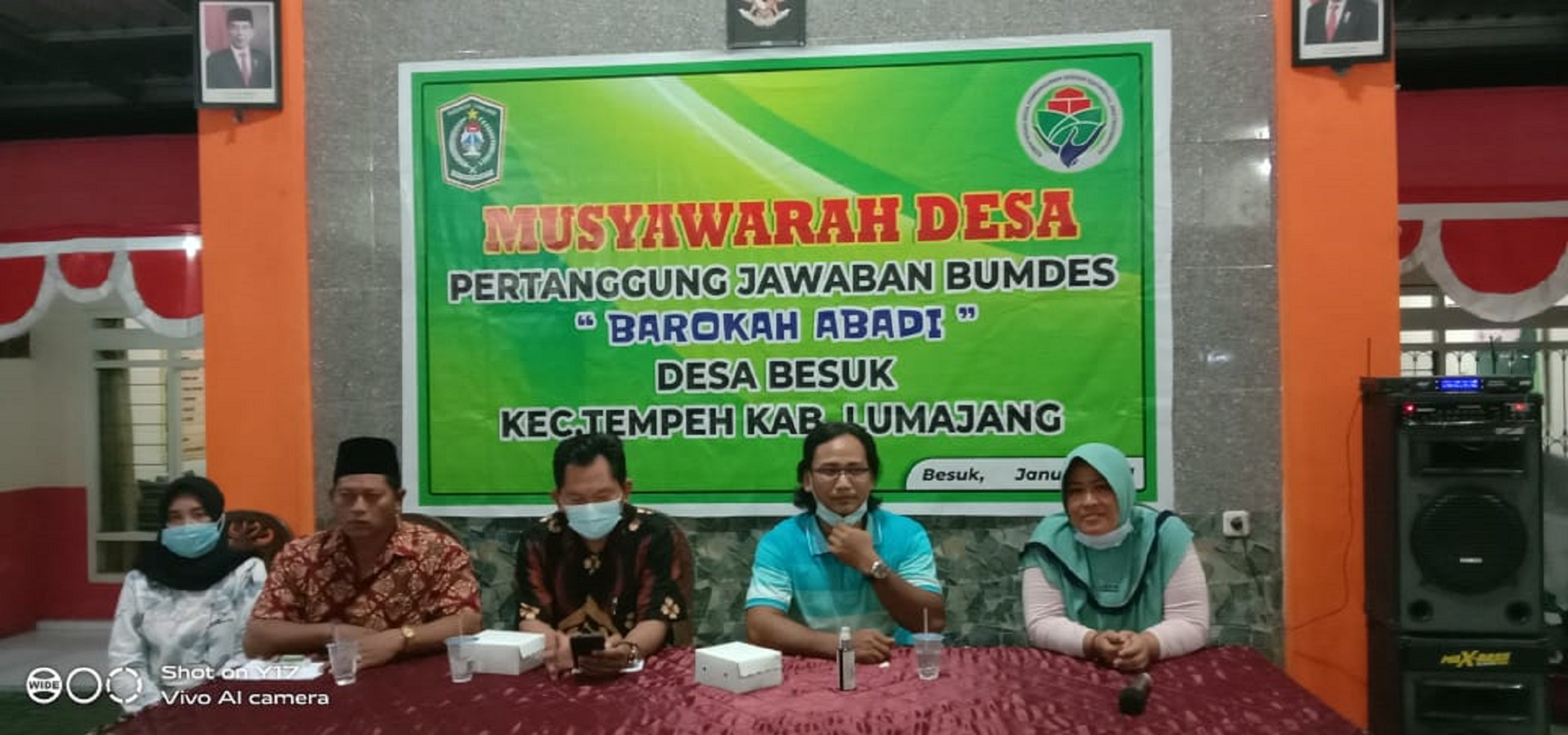 Dalam rangka transparansi anggaran, pada hari Jum'at tanggal 22 Januari 2021, BUMDES BAROKAH ABADI desa Besuk Kecamatan Tempeh mengadakan Musyawarah pertanggungjawaban BUMDES Tahun ...